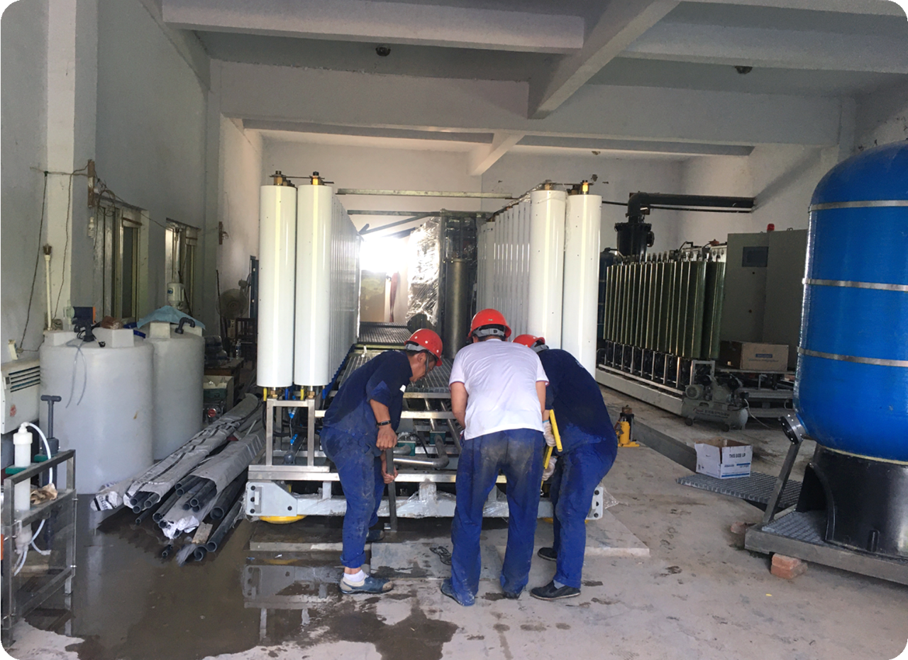 在項(xiàng)目負(fù)責(zé)人的帶領(lǐng)下,項(xiàng)目部施工員們緊張有序地開展著后續(xù)各項(xiàng)工作。在設(shè)備安裝過程中因業(yè)主膜車間空間受限,設(shè)備只能從膜車間門口用專業(yè)搬運(yùn)器具一點(diǎn)點(diǎn)將設(shè)備安裝到已制作好的設(shè)備基礎(chǔ)上。搬運(yùn)過程中項(xiàng)目部施工員們不怕苦、不怕累,在組長(zhǎng)的帶領(lǐng)下安全、有效地完成設(shè)備就位工作,充分體現(xiàn)出現(xiàn)場(chǎng)施工員們對(duì)解決困難問題的積極態(tài)度和對(duì)工作的高度專業(yè)性。