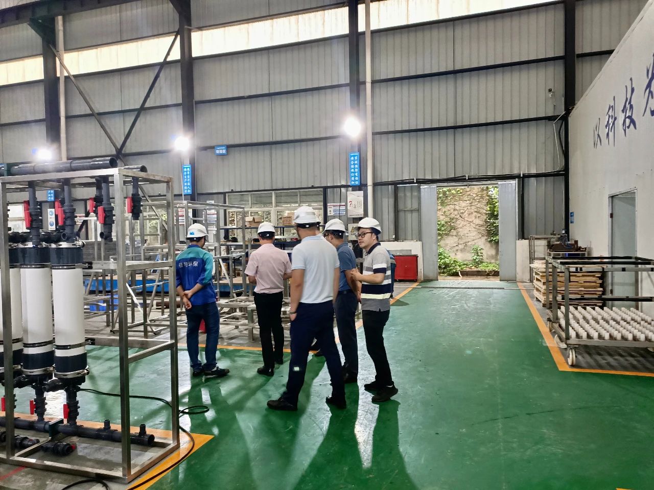 下午,碩特環(huán)保銷售大區(qū)經(jīng)理劉富東陪同上??岛悱h(huán)境公司領導一行前往青白江工廠進行參觀,劉經(jīng)理向康恒環(huán)境各位領導介紹了公司工廠內(nèi)生產(chǎn)的DTRO、RO、MBR等設備及其工作原理,帶領各位領導參觀膜車間及研發(fā)室,詳細解答了大家所提出的相關技術問題。