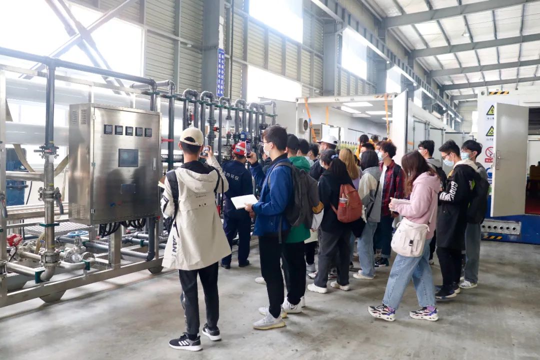 期間,副廠長陳虎和車間主任伍文帶領學生參觀工廠,了解公司情況,給學生詳細介紹公司設備、技術及設備工作原理。而后學生們隨車到達仁壽濃縮液全量處理項目現(xiàn)場,仁壽項目采用碩特環(huán)保自主研發(fā)的滲濾液濃縮液非蒸發(fā)全量處理工藝,運維負責人帶領學生們參觀感受整個項目的全流程處理工藝,讓學生們對廢水處理工藝及處理設備有更全面了解。