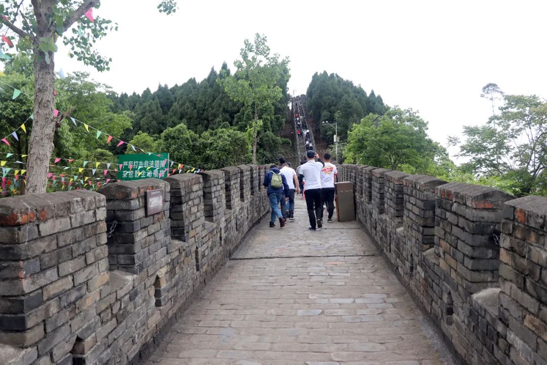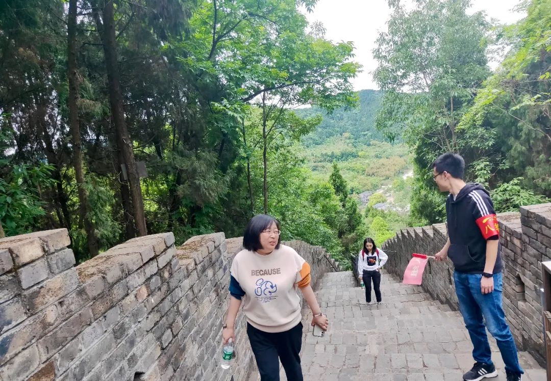 金龍長城全長約1680米,5個烽火臺,伏臥九泉山,從金龍湖景區(qū)大門向山脊延伸,到金龍寺,是中國目前規(guī)模最大的模擬長城。拾階而上,員工們呼吸著新鮮的空氣,感受著大自然的旖旎風光,在歡聲笑語中向山頂一路攀登。層層疊疊的大山之中,一條長城之路隨著群山的起伏,蜿蜒而過,直通山頂,部分平時缺乏鍛煉的同事不久便氣喘吁吁,登山健將主動代背行囊,鼓勵的言語讓疲憊的同事再次打起精神,邁開腳步。有些同事一鼓作氣,按照活動規(guī)則,角逐前三,到達登峰,與金龍寺合影留念,成為同事們前行的標桿和榜樣。稍作休憩后,又有一些同事繼續(xù)出發(fā),發(fā)揚團隊精神,挑戰(zhàn)自我,問鼎金龍長城,一覽山間風景。