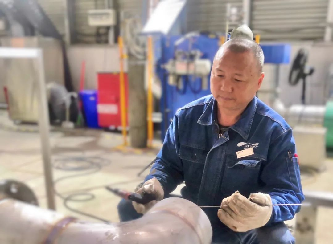 八月,正值酷暑,公司焊接部門接到焊接計(jì)劃后,繆家彬一直忙碌在變形量控制的方案中,通過多次嘗試、總結(jié)、分析發(fā)現(xiàn)焊縫焊接問題后,及時(shí)采取措施,既能夠保證管路焊接焊透、焊縫雙面成型,又能保證總體尺寸誤差在1mm以內(nèi)。九月,高壓管路正式投產(chǎn),管路出現(xiàn)多路分叉及多種角度的難題,繆家彬就地取材,利用邊角余料,制作出適用各種管路的焊接工裝,并申報(bào)專利。目前項(xiàng)目按計(jì)劃已完成NF和RO管路焊接任務(wù),UF管路正在焊接制作中,力爭保質(zhì)保量按時(shí)完成項(xiàng)目交付任務(wù)。