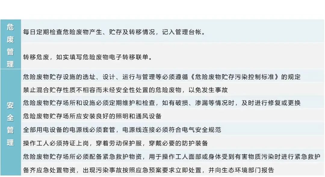 企業(yè)應(yīng)建立危險廢物管理制度,明確危險廢物管理的部門與責(zé)任人。明確危險廢物處置的目標(biāo)指標(biāo),建立危險廢物來源清單和危險廢物處置商及處置情況清單。企業(yè)應(yīng)制定危險廢物收集、貯存現(xiàn)場防滲、防泄漏、防雨等措施并規(guī)范實(shí)施,處置應(yīng)選擇有資質(zhì)單位并進(jìn)行危險廢物轉(zhuǎn)移計劃備案,備案通過后,如實(shí)填寫“危險廢物轉(zhuǎn)移聯(lián)單”并存檔。